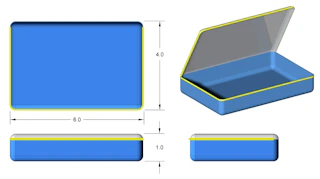 This is the larger-size of the ARRAY pouches. 6 inches long, 4 inches wide, and about 1 inch deep. It has a transparent lid to make it easy to see what's inside. The BLUE color helps you quickly differentiate between your different sized pouches. A zipper with a red cord pull goes around three sides for access. The outside bottom is covered with Hook Velcro which allows you to attach it to the FLEX ARRAY BASE PLATE.