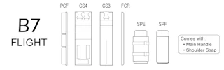 The B7 FLIGHT includes a MAIN HANDLE, and a SHOULDER STRAP.